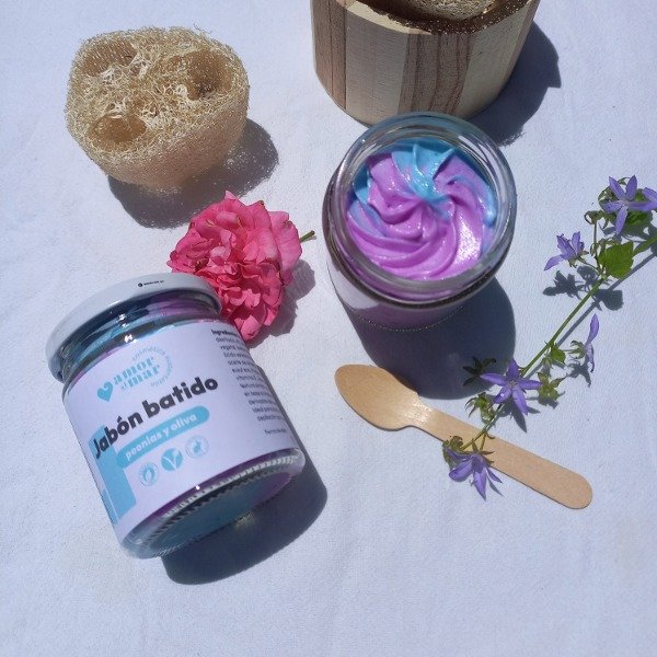 Todos los jabones batidos incluyen cuchara de bambú y esponja vegetal
