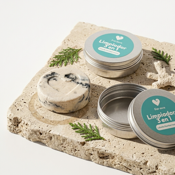 Limpieza suave y natural que puede usarse para cabello, rostro y barba. Viene en lata de alumini que facilita tenerlo siempre a mano, ideal para viajes o para llevar al gimnasio.